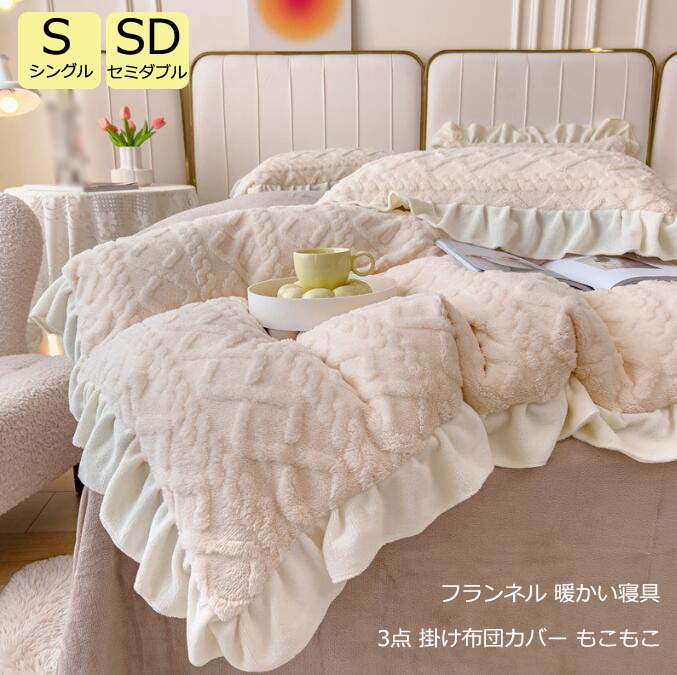 掛け布団カバー 】3点セット 布団カバーセット セミダブル 厚手起毛 シングル 暖かい フランネル ・・・