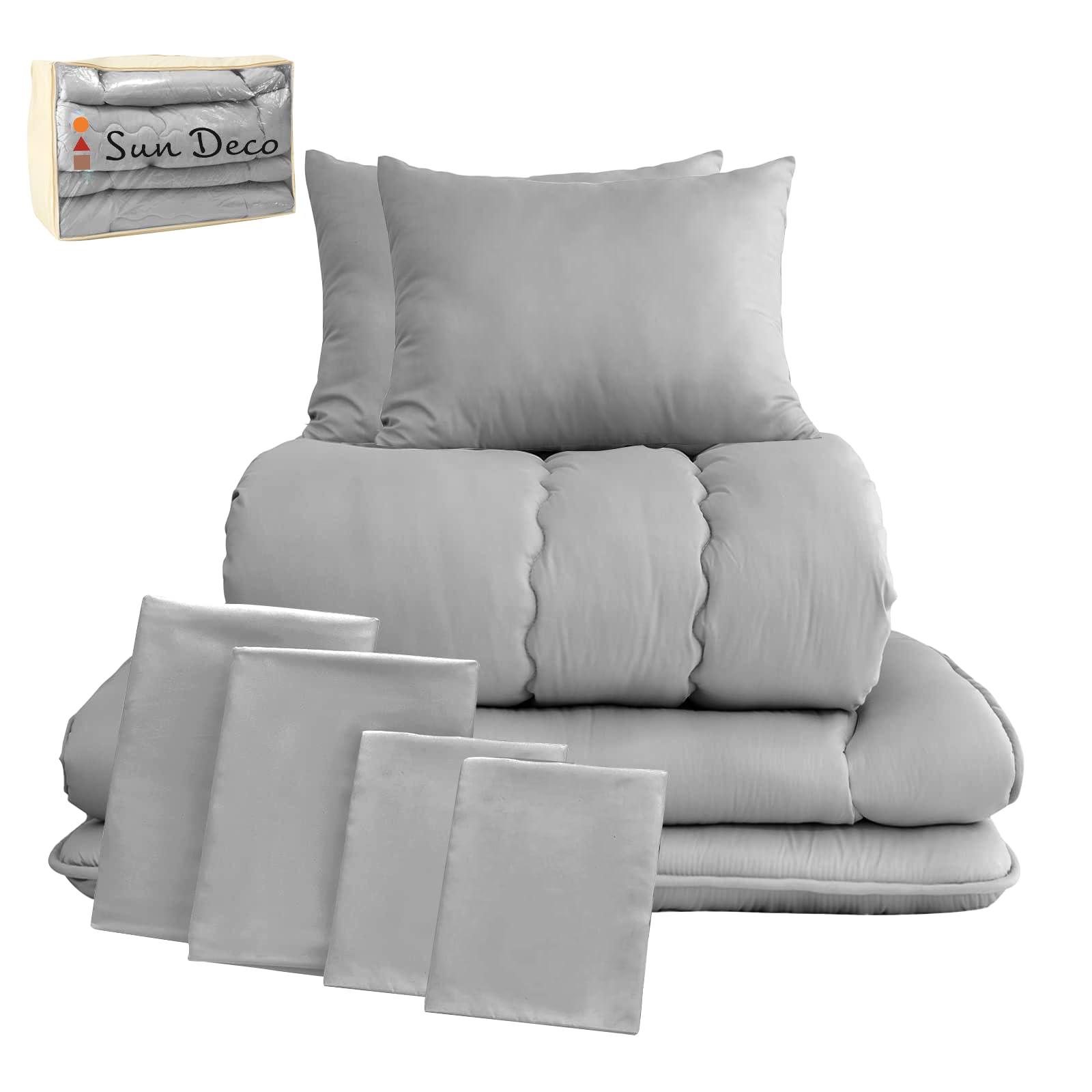 布団セット 組布団 セット ふとんセット カバー付き 掛布団 敷布団 厚い 洗える 7点 9点 寝具 客用布団 来客 学生寮 一人暮らし シングル布団セット セミダブル ダブル おしゃれ グレー