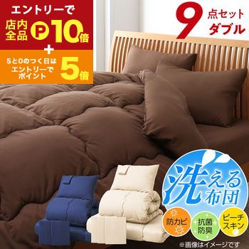 布団セット ダブル 敷布団 掛け布団 清潔 抗菌 防臭 防カビ カバー付き 9点セット