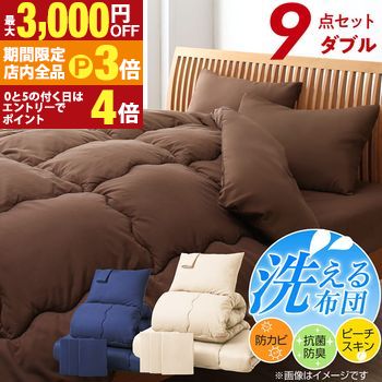 布団セット ふとんセット ダブル 9点セット 抗菌防臭 防カビ 敷きふとん 掛けふとん 洗える 来客用
