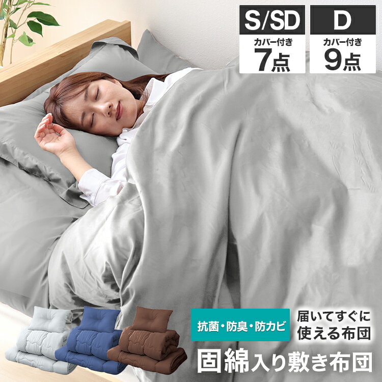 【ポイント10倍】 布団セット シングル セミダブル ダブル 9点 7点 カバー付き 固綿入 洗える・・・