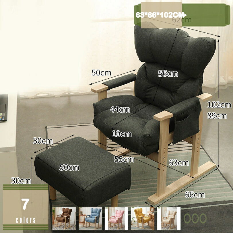 座椅子 1人掛け ハイバックソファ 実木椅子 一人掛け オフィスチェア 高さ調節可能 カウチ 一人暮らし 昼寝 休憩 座り心地が良い リラックスソファ 寝れる椅子 サイドポケット