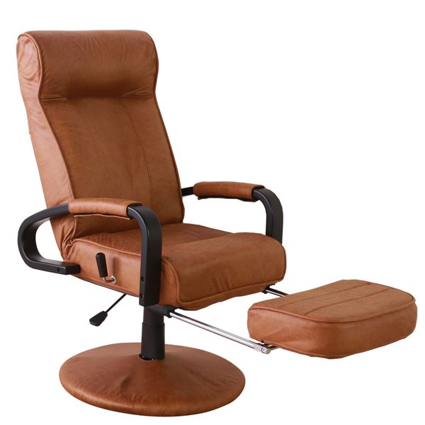 座椅子 約幅58cm ブラウン (キャメル) 回転式 フットレスト 肘付き 手元レバー ガス式 無段・・・