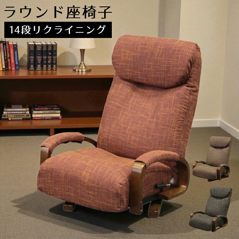 回転式 高座椅子 無段階リクライニング ヘッドギア ポケット付き レバー式 おしゃれ 北欧 かわいい・・・
