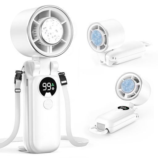 【無料配送】ハンディファン 冷却プレート 携帯扇風機 瞬間冷却&前後160°折り畳み ハンディ扇風機 7枚羽根 100段階風量調節 5000mAh ミニファン カラビナ&ストラップ付き(ホワイト)