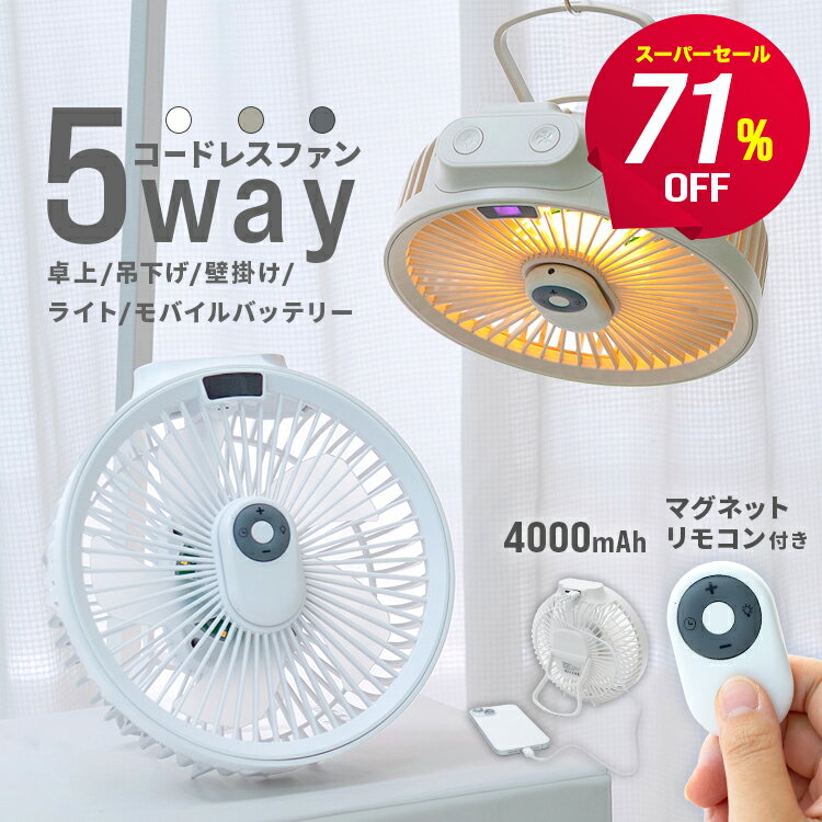 ≪送料無料≫1台5役!扇風機+ライト+モバイルバッテリーに!卓上・吊り下げ・壁掛け対応!LEDライト搭載で停電・夜間も安心!スマホ充電OK!どこでも涼しいコードレス扇風機