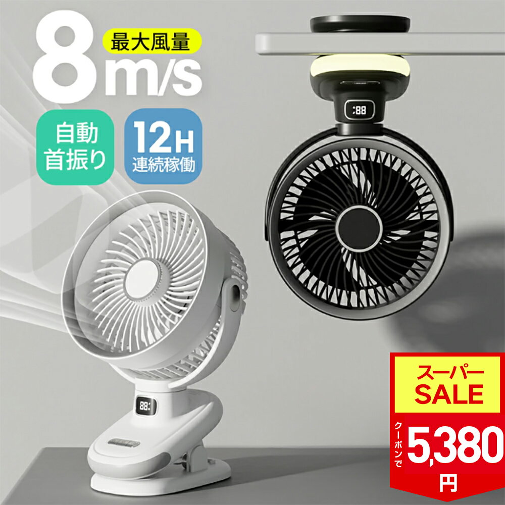【SS限定62%!500円OFF⇒5,380円!】5段階風量調節 扇風機 クリップ1台4役 12H連・・・