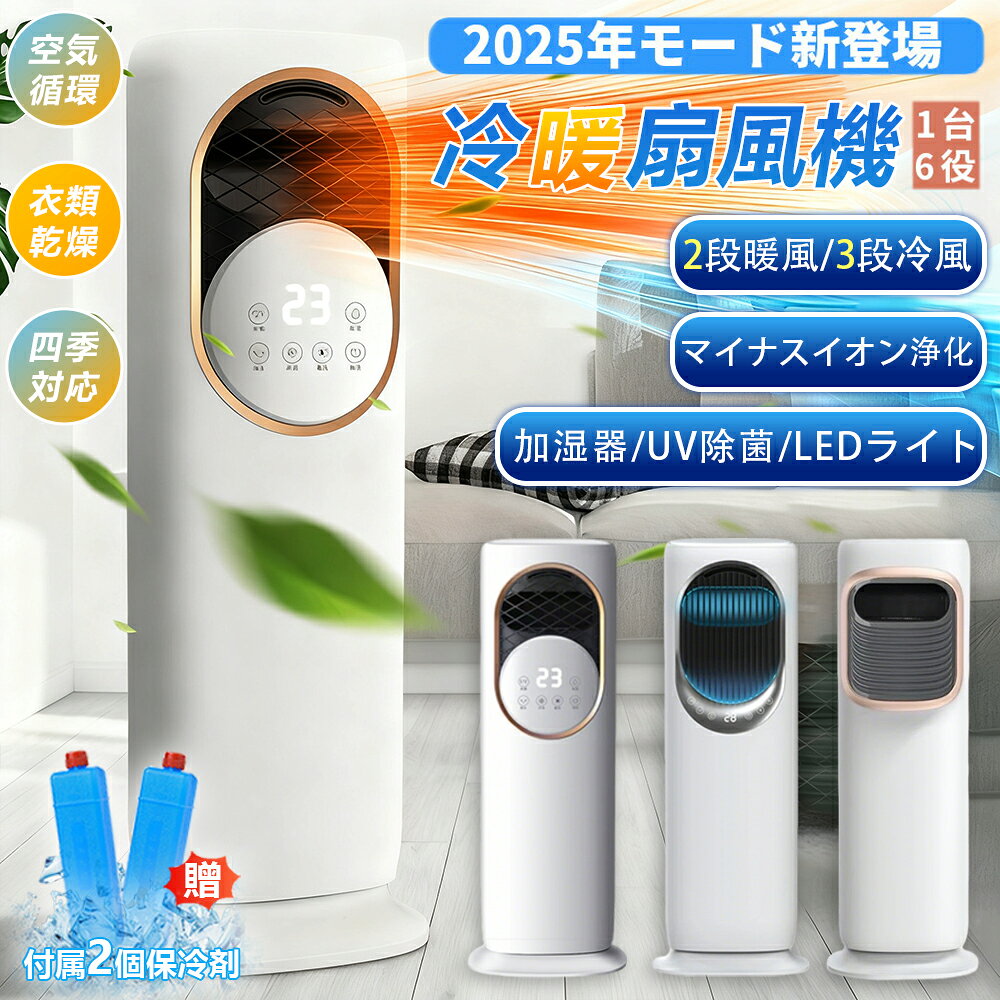 【2025最新冷暖風扇機・冷風・暖風・UV除菌・マイナスイオン浄化・超音波式噴霧加湿・LEDライト】PSE認証 冷暖両用 広角送風 空気循環 HEPAフィルター 花粉 夏場対策 衣類乾燥 消臭 寝室