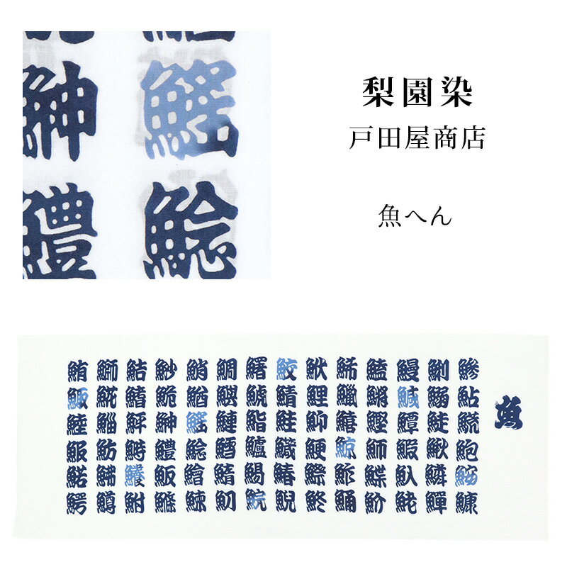 手ぬぐい 梨園染め「魚へん 900」《戸田屋商店》寿司/鮨/水色/漢字/手拭い/てぬぐい【メール便O・・・