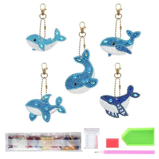 サムコス5Dダイヤモンド絵画キーホルダークジラ頭キット5個セットかわいい青小さなペンダント両面複数の・・・