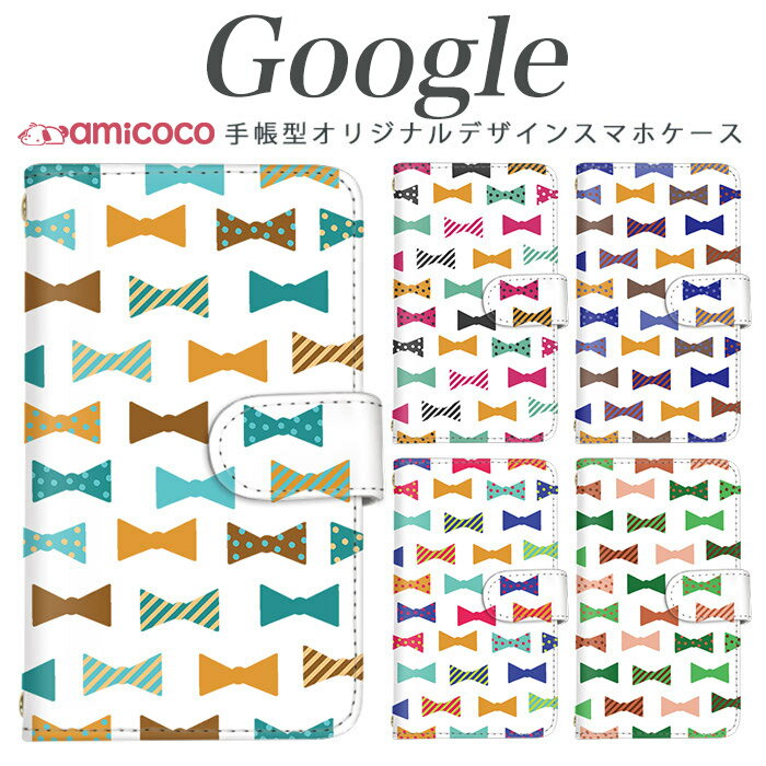 Google Pixelスマホ 最新機種対応 Pixel6 Pixel4 Pixel3 手帳型 手帳カバー カラフルリボン