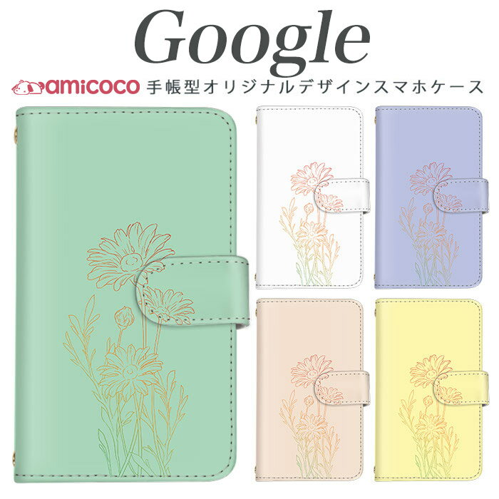 Google Pixelスマホ 最新機種対応 Pixel6 Pixel4 Pixel3 手帳型 手帳カバー シンプル花01