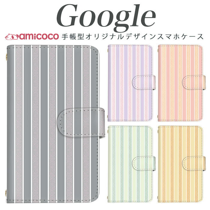Google Pixelスマホ 最新機種対応 Pixel6 Pixel4 Pixel3 手帳型 手帳カバー ストライプ柄