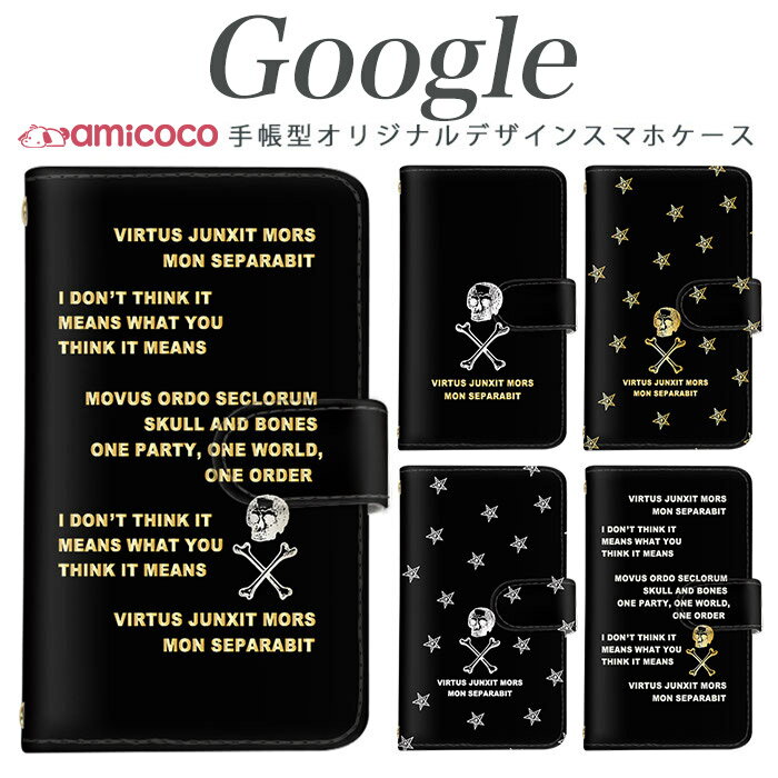 Google Pixelスマホ 最新機種対応 Pixel6 Pixel4 Pixel3 手帳型 手帳カバー スカル五芒星