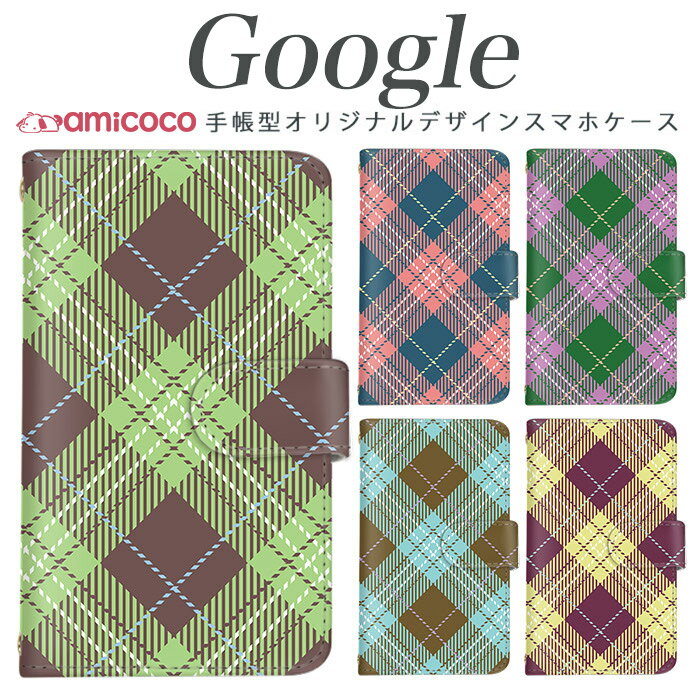 Google Pixelスマホ 最新機種対応 Pixel6 Pixel4 Pixel3 手帳型 手帳カバー ナチュラルチェック