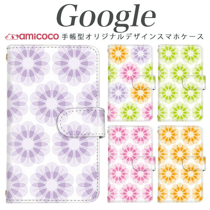 Google Pixelスマホ 最新機種対応 Pixel6 Pixel4 Pixel3 手帳型 手帳カバー カラフル_フラワー
