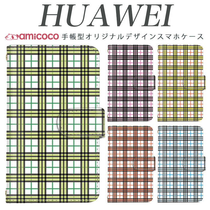 HUAWEI 手帳型 スマホケース ファーウェイ ふぁーうぇい チェック柄 シンプル 格子柄 ショル・・・