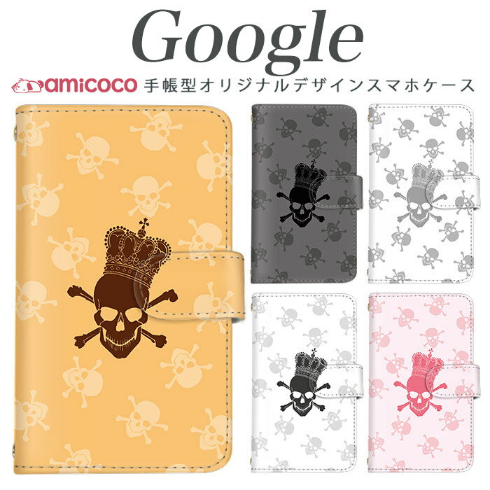 Google Pixelスマホ 最新機種対応 Pixel6 Pixel4 Pixel3 手帳型 手帳カバー スカルクラウン