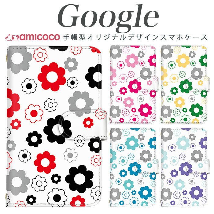 Google Pixelスマホ 最新機種対応 Pixel6 Pixel4 Pixel3 手帳型 手帳カバー カラフルデイジー