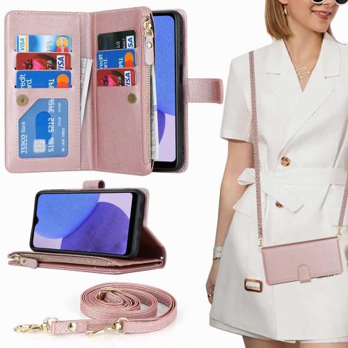 ショルダー&ハンドストラップ付き ギャラクシー SCG33 手帳型ケース おしゃれ SC-53F SC-54F ケース 財布型 Galaxy SCG21 SC-53D スマホカバー ジッパー ストラップ PUレザー 高級感