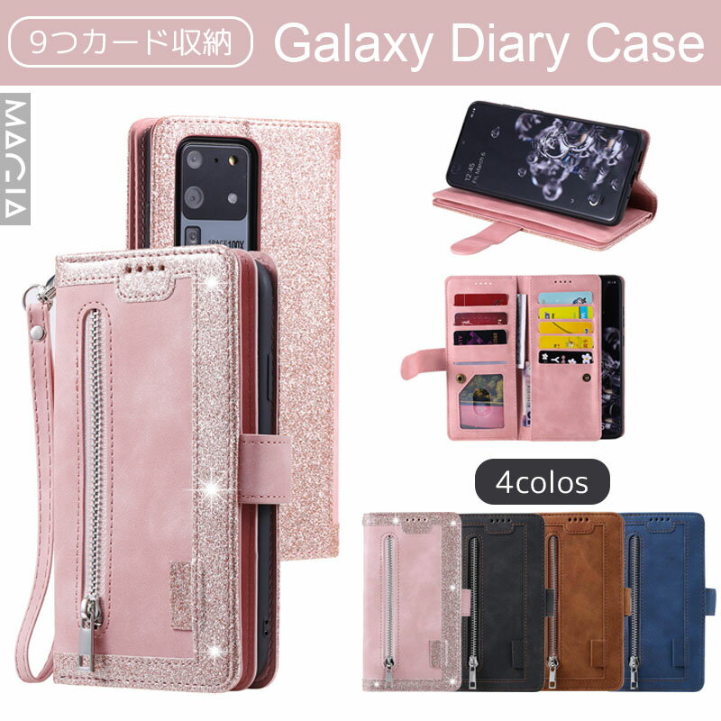 Galaxy S22 Ultra ケース 手帳型 純正 Galaxy S21 ケース かわいい Galaxy S21 Ultra 手帳カバー おしゃれ カード収納 ジッパー式ポケット オシャレ キラキラ スタンド機能 マグネット式