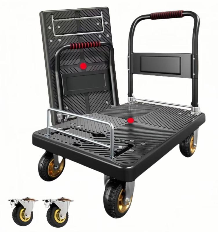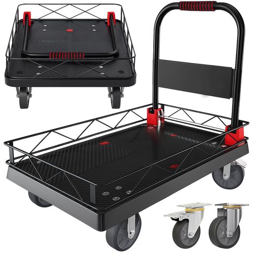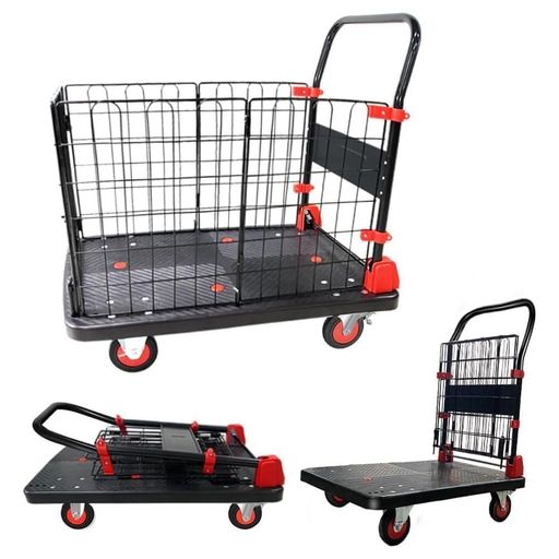 EastEamily台車大型四方ガード付き折りたたみ手押し台車ストッパー付き90x60cm耐荷重35・・・