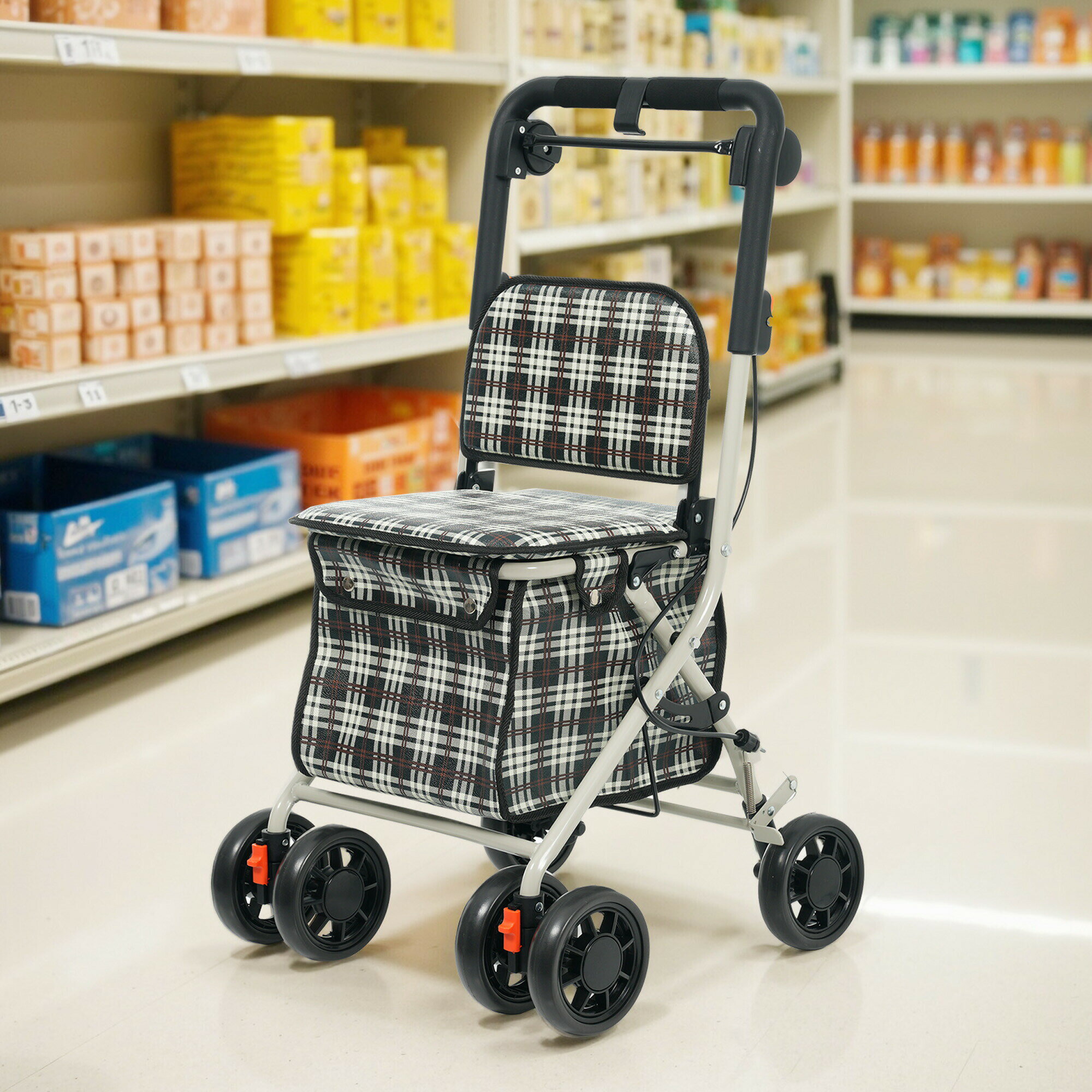 椅子付き 歩行器 折りたたみ ショッピングカー 高齢者 ブレーキ 父の日 母の日 敬老の日 送料無料 歩行器 歩行車 介護 椅子付 四輪