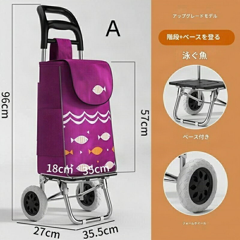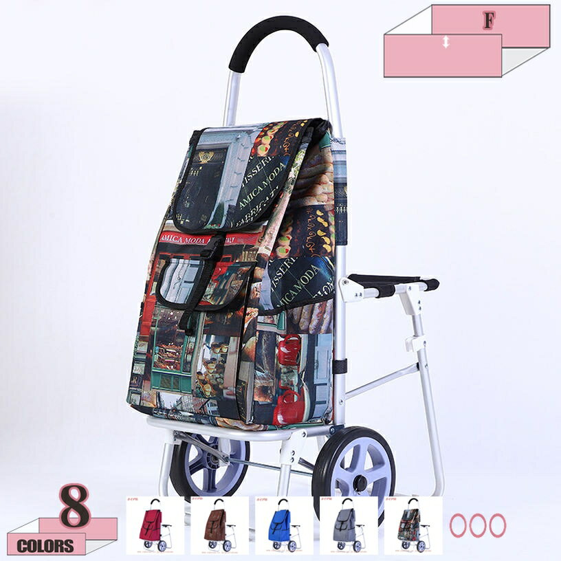 ショッピングカート 軽量 折りたたみ 2輪 買い物 大容量 手押し車 椅子付き おしゃれ 高齢者用 ・・・