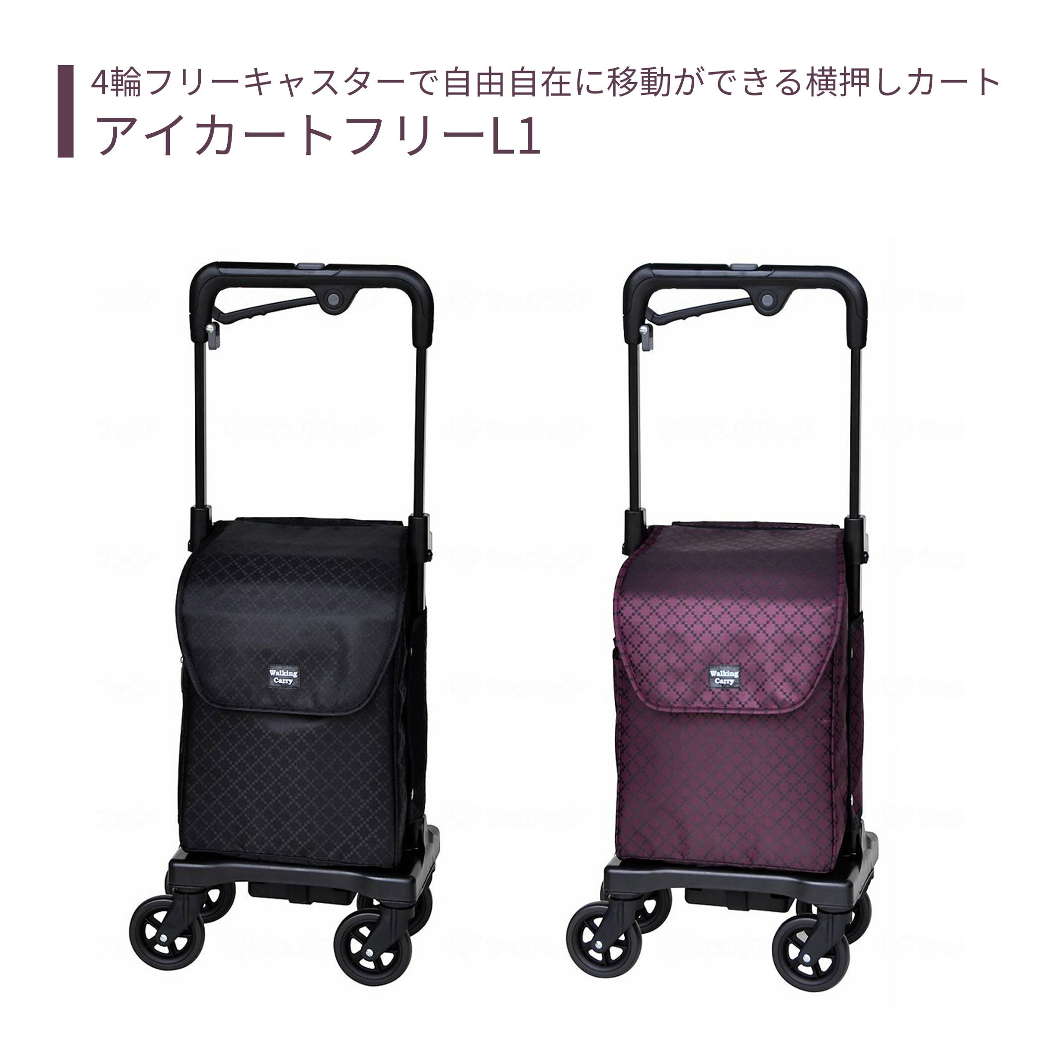 「アイカート フリー」は、荷物がたっぷり入るきんちゃく式バッグの付いています。4輪フリーキャスターで自由自在に移動ができる横押しカートです。ブレーキ付きでより安心です。