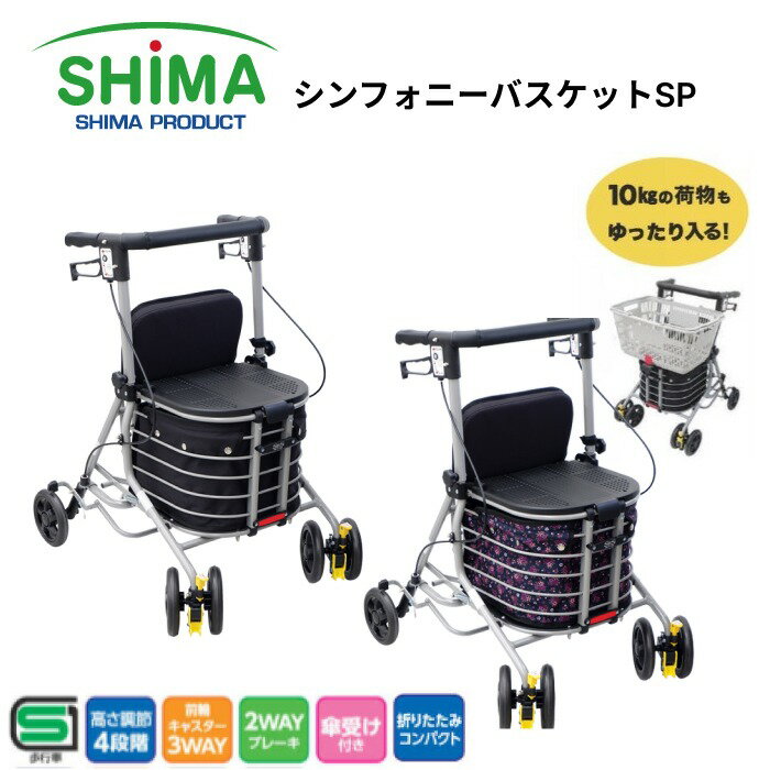 歩行車 高齢者 手押し車 シンフォニーバスケットSP 島製作所 │ 歩行補助車 軽量 介護用品 歩行・・・
