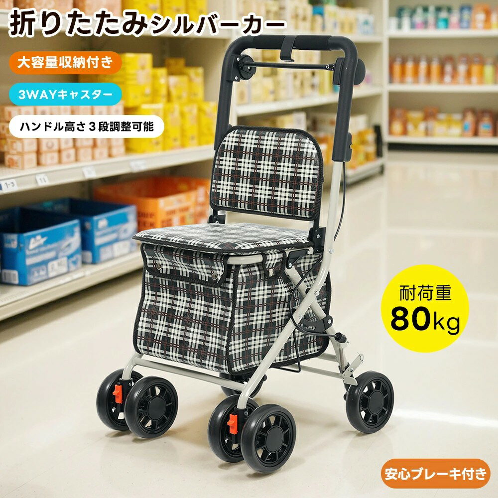 【お買い物マラソン期間中!】シルバーカー 折りたたみ 軽量 コンパクト おしゃれ 座れる 4段高さ調・・・