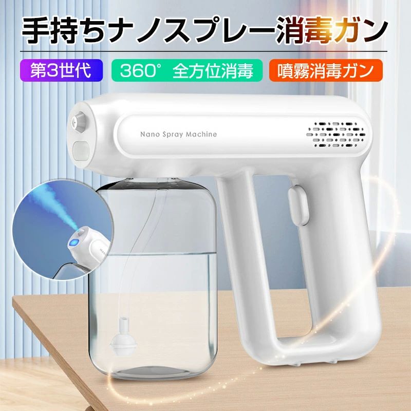 ナノスプレーガン スプレーガン コードレス アルコールスプレー噴霧器 USB充電式 アルコール対応 UV除菌機能付 電動式 手提げ 消毒器 遠射程 紫外線 噴水量調整可能 殺菌 送料無料
