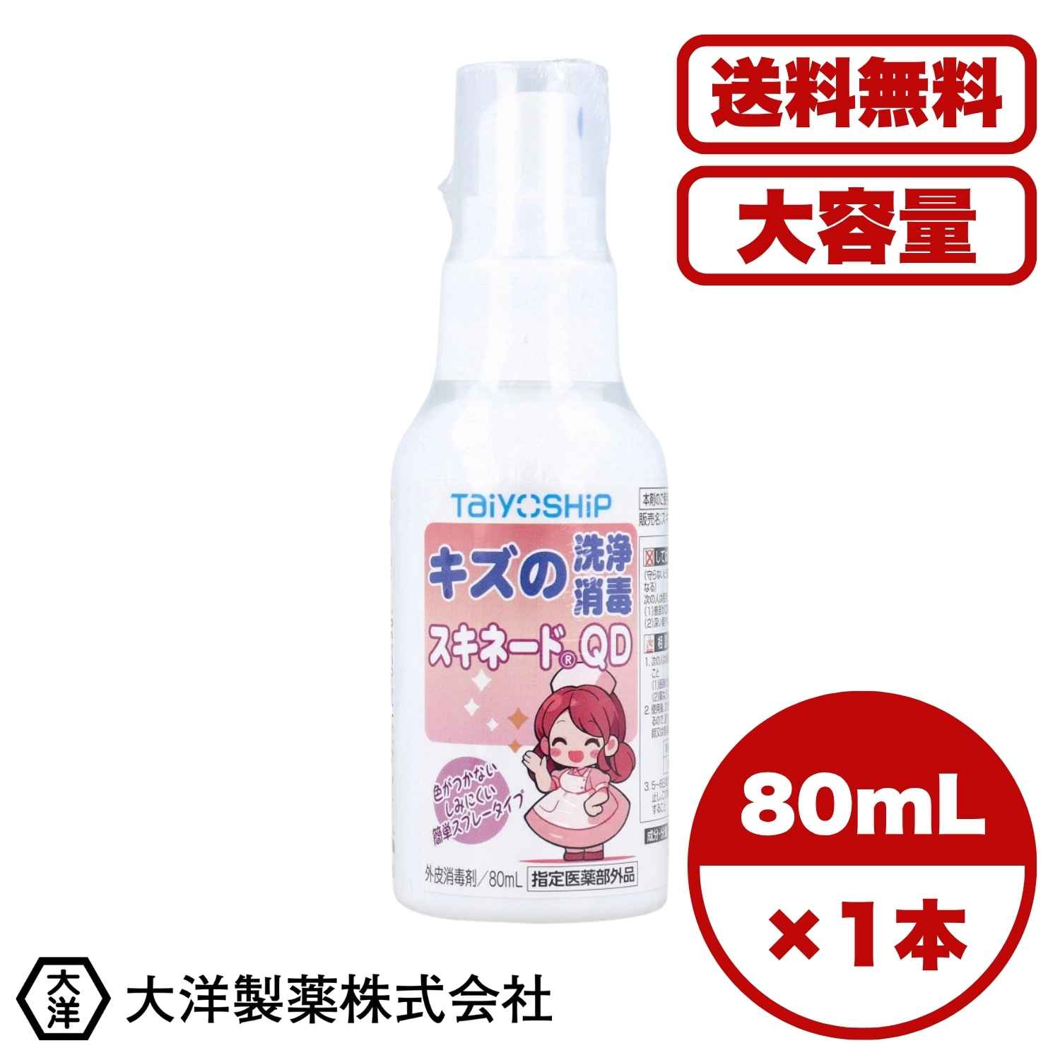 消毒スプレー TaiyOSHiP スキネードQD 外皮消毒剤 80mL 傷の洗浄 消毒 色がつかない・・・