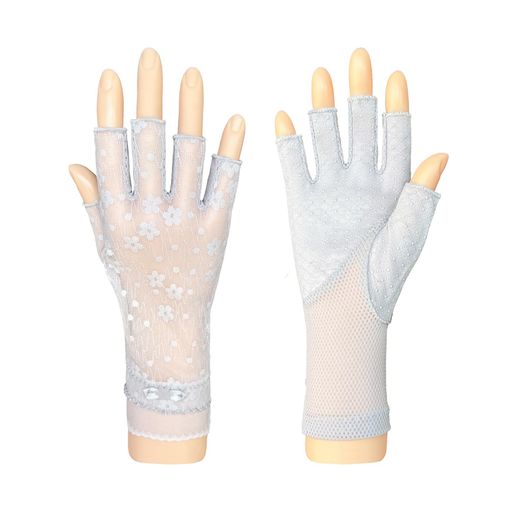 手袋 レディース 夏用 UVカット グローブ メッシュ 通気性良い UPF50+認定済・接触冷感-5・・・