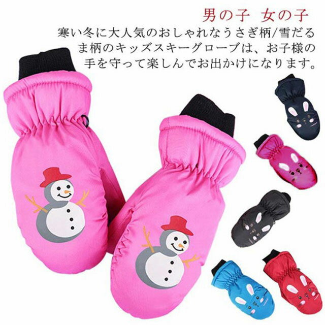 防水 可愛い スノー手袋 キッズ用 厚手 ミトン スキーグローブ グローブ 滑り止め 保温 防寒 ス・・・