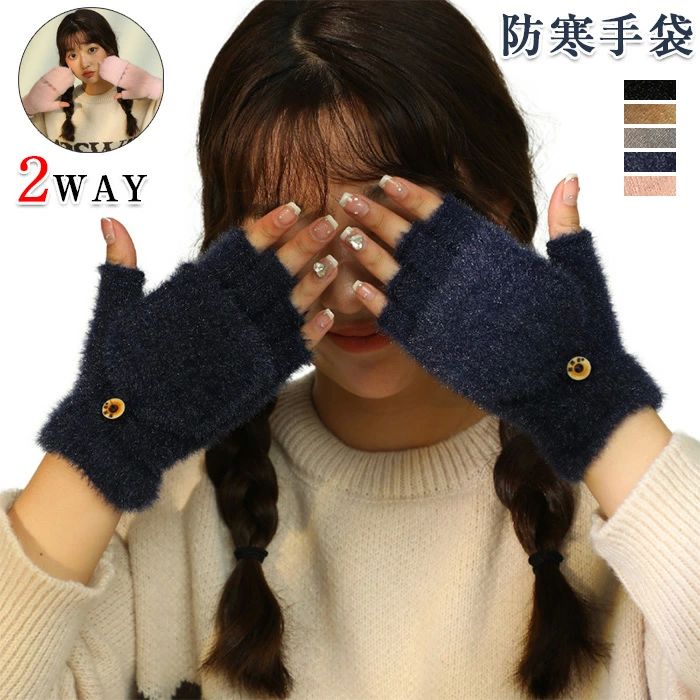 手袋 ミトン 2way 裏起毛 レディース 指なし もこもこ 起毛 ファー 女の子 厚手 無地 シンプル かわいい 冬 秋冬 グローブ あったか 裏ボア 防寒 保温 アウトドア