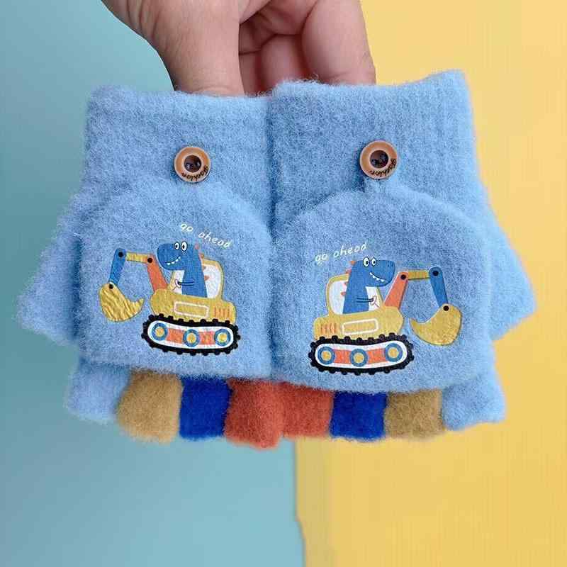 手袋 キッズ 男の子 女の子 子供用 グローブ 指なし フリップカバー 2WAY 厚手 あったか 保・・・