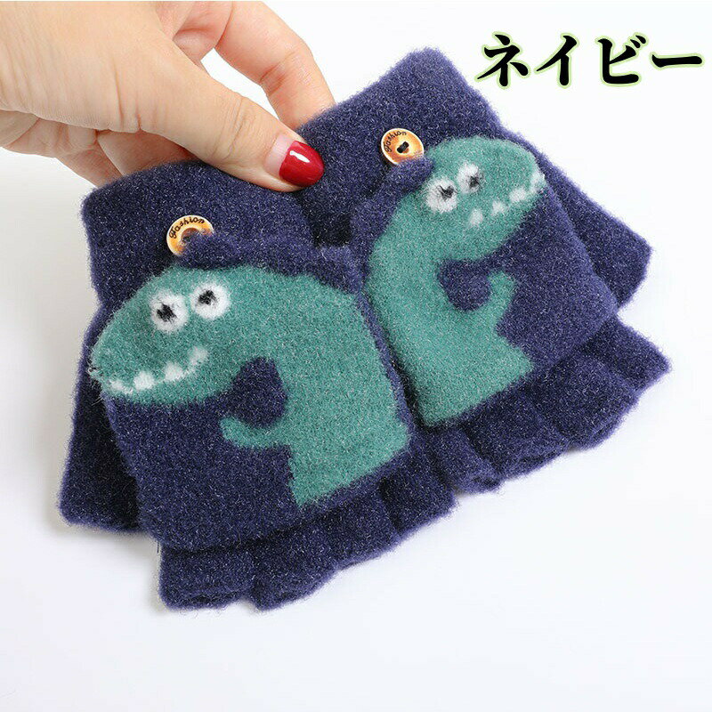 キッズ 手袋 ミトン こども ニット 手袋 男の子 女の子 子供 指なし グローブ 2way 恐竜 ・・・