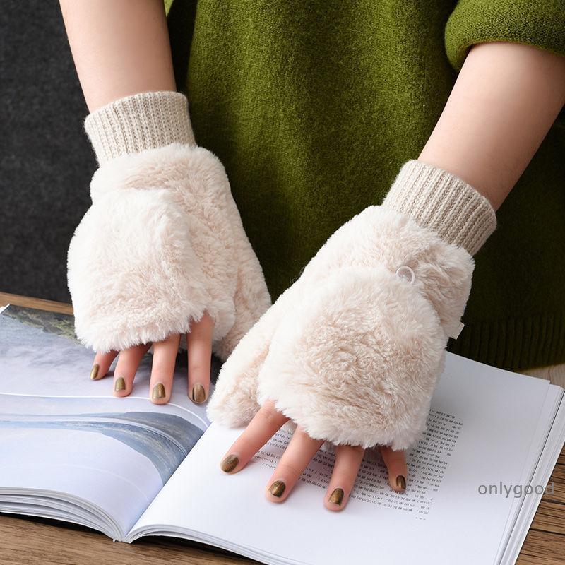 手袋 学生用 ユニセックス 秋冬 防寒 モコモコ ボア フリース 指なし 2WAY フリップカバー ・・・