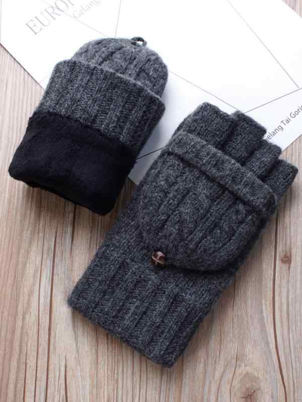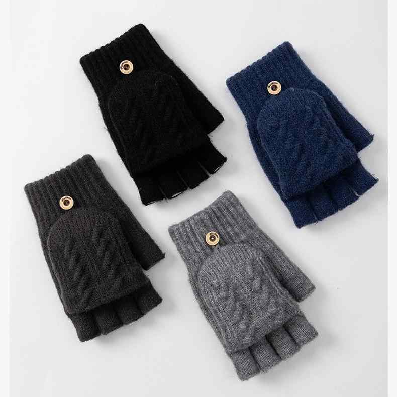 手袋 メンズ 男性用 秋冬 防寒 半指 指なし グローブ フリップカバー 2WAY 羊毛 ウール 裏・・・