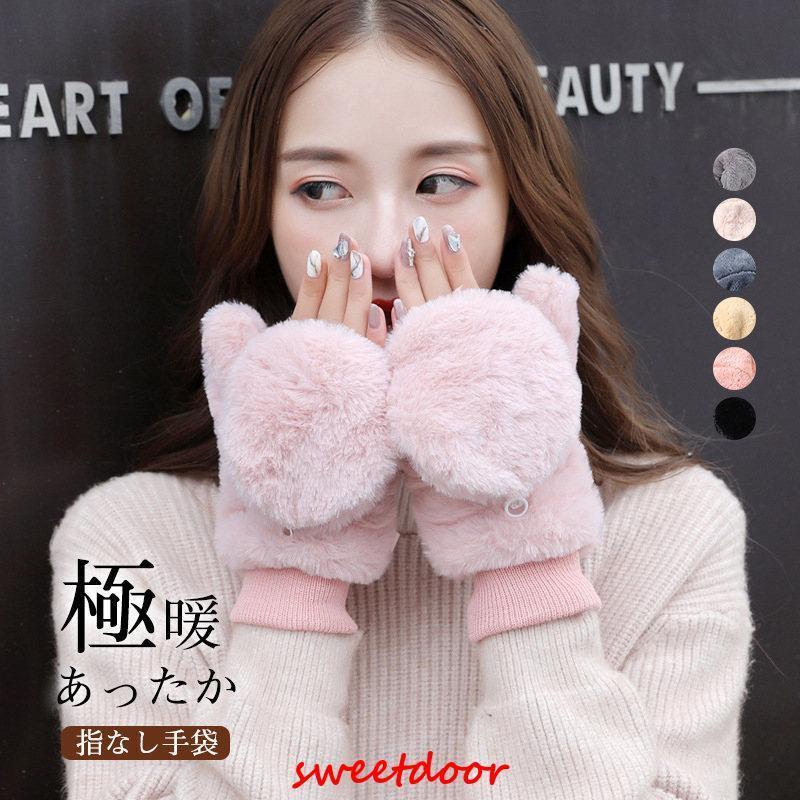 ファー手袋 ふわふわ ファー ミトン グローブ レディース ハンドウォーマー 手袋 指なし スマホ対応 暖かい もこもこ あったか うさ耳 女性用手袋 学生