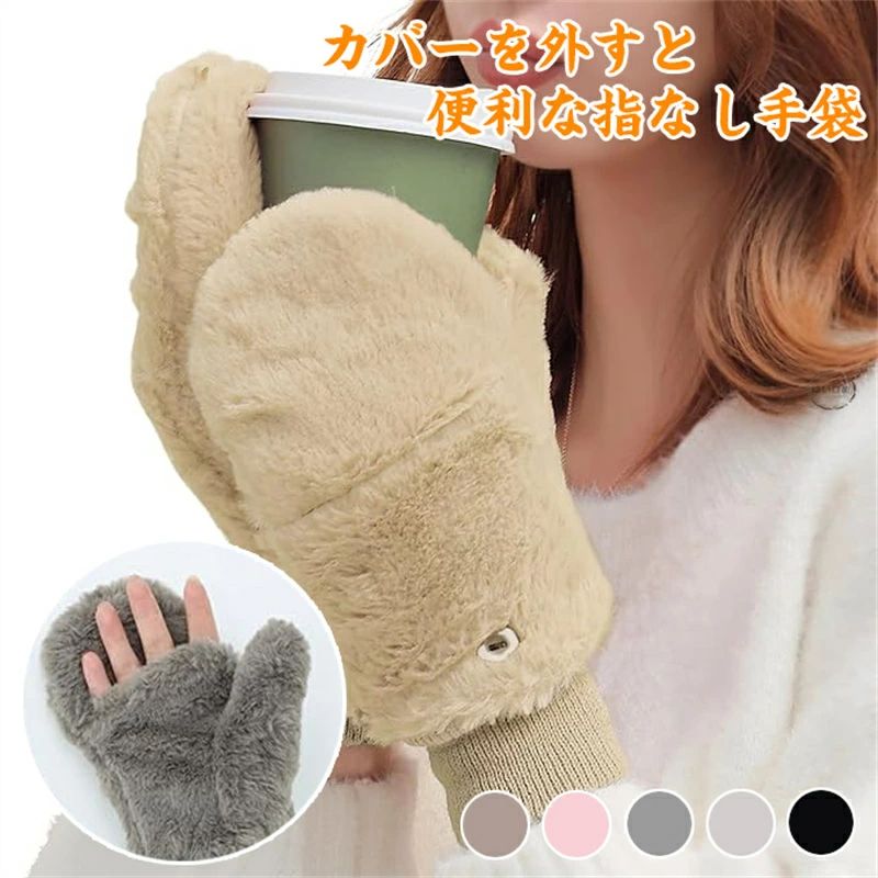 送料無料 手袋 ミトン 2way 裏起毛 レディース 指なし スマホ対応 もこもこ 起毛 ファー 女の子 厚手 無地 シンプル かわいい 冬 秋冬 グローブ