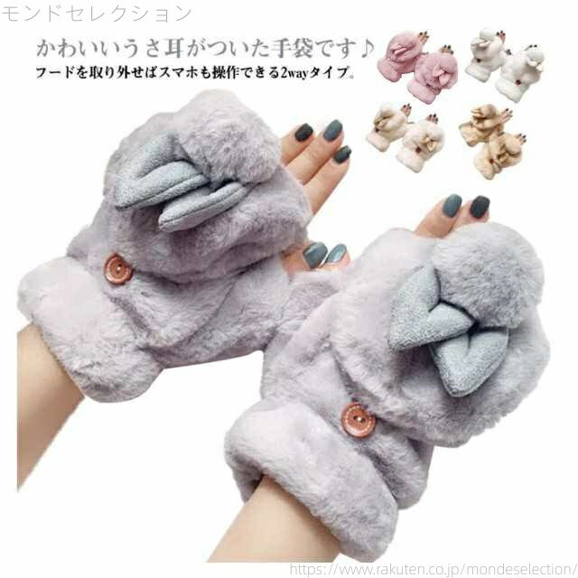 手袋 レディース 冬用 韓国風 合わせやすい インスタ映え かわいい うさぎモチーフ 指なし 2WA・・・