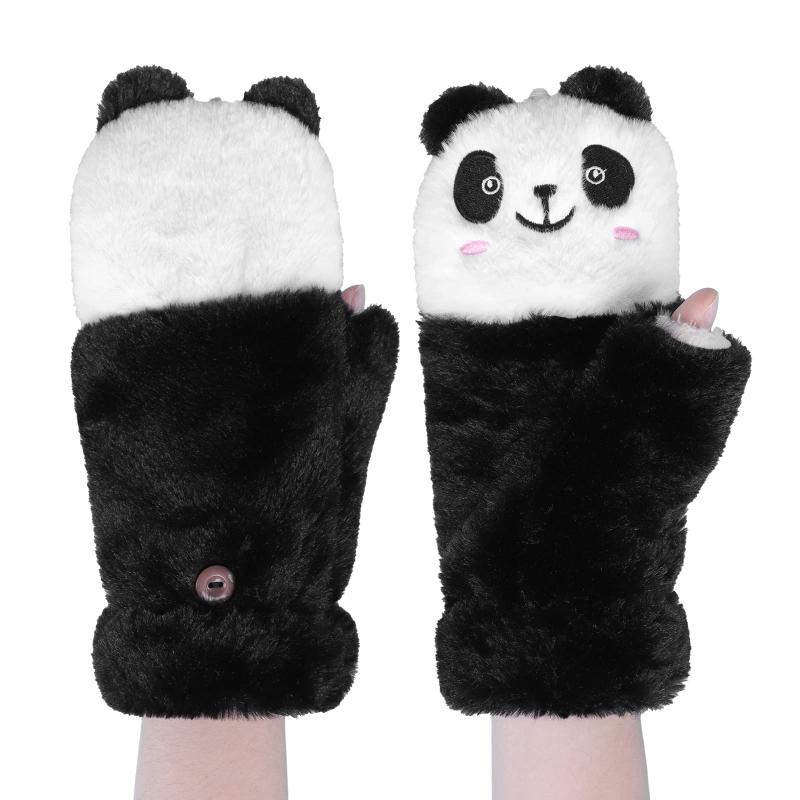 [IPENNYE] レディース手袋 モコモコアニマルミトン パンダ 2way 指なし手袋 カバー付き・・・