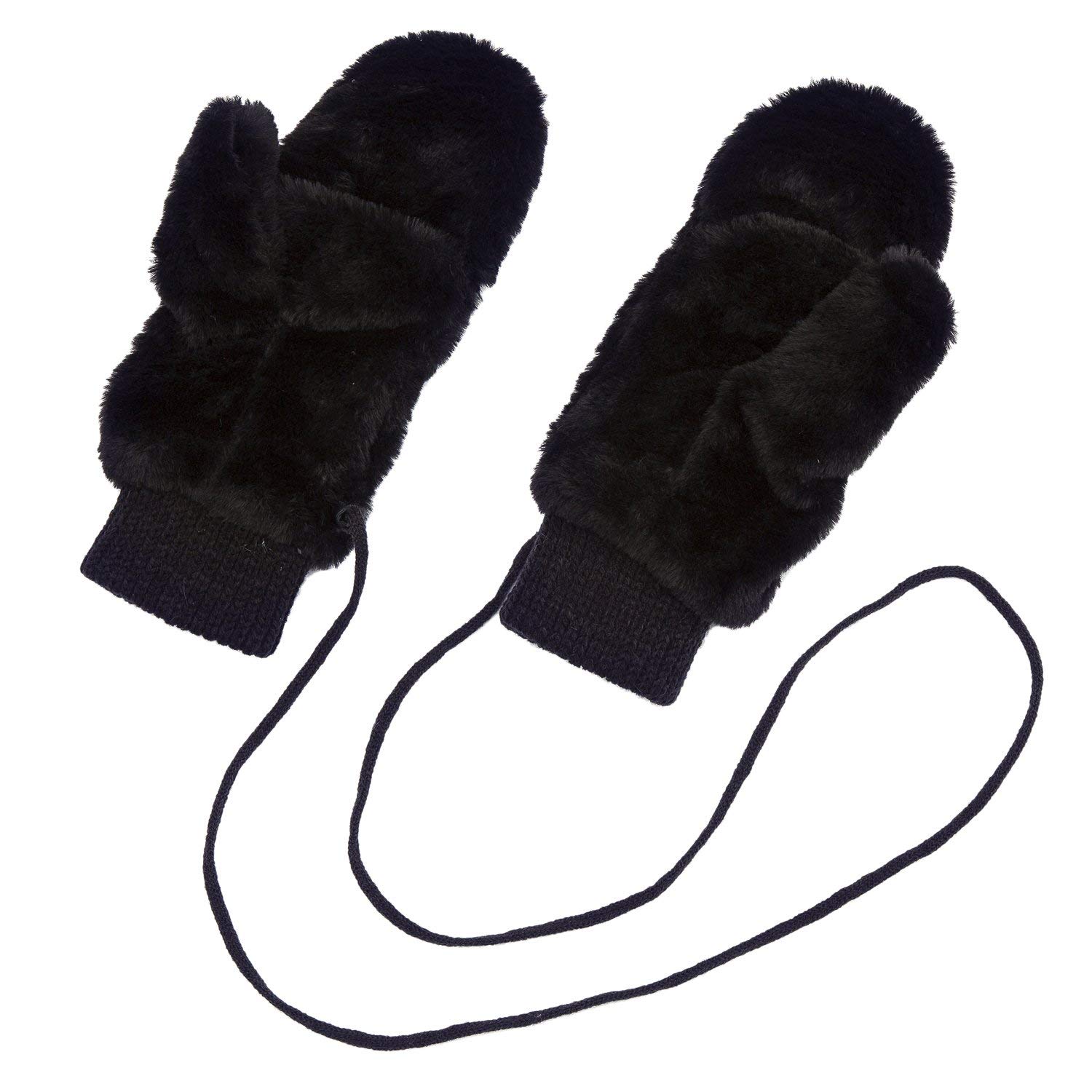 [Euyqs] 手袋 レディース フェイクファー 厚手 保温 防寒 ミトン ヒモ付き 2WAY 指な・・・