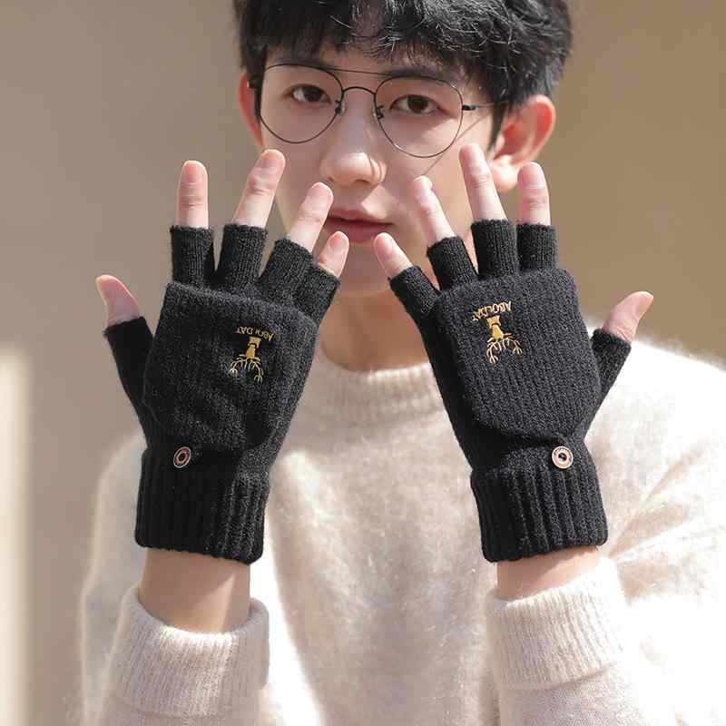 手袋 キッズ 男の子 指なし フリップカバー 2WAY 防寒 保温 暖かい 冬用 学生 通学 勉強用・・・