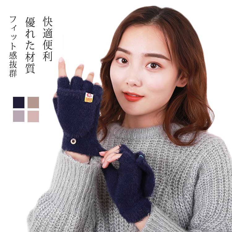 可愛さも機能性も抜群のあったかitem♪手袋 指なし スマホ対応 2way ニット 防寒グッズ