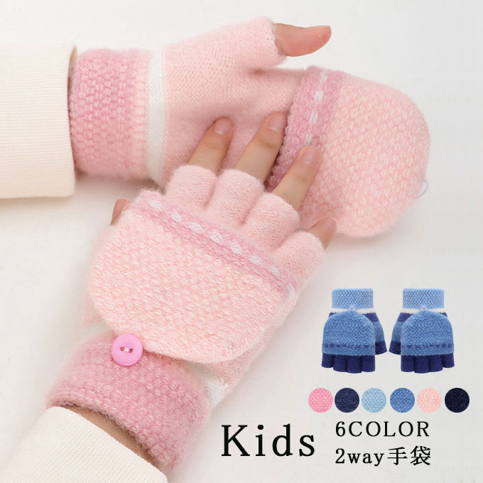 2way ミトン 指なし 手袋 女の子 キッズ ジュニア かわいい お