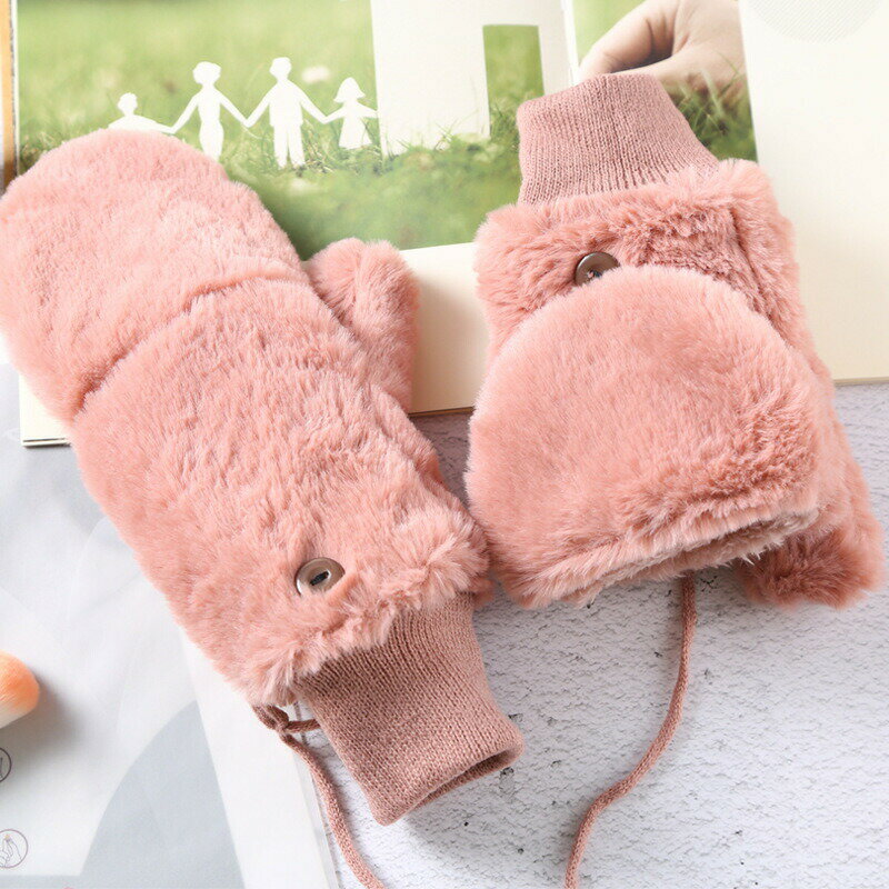 キッズ 2way リボン パステルカラー 防寒 指なし ミトン 秋冬 レディース 手袋 ふんわり 学生 ふわふわ 裏起毛 ジュニア 2way おしゃれ