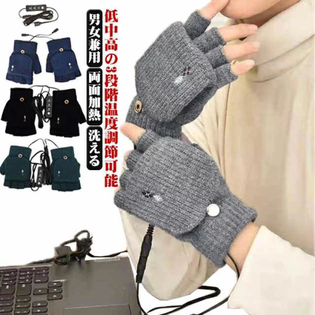 前 温度調節可能 3段階 低中高 ヒーター内蔵 ホット手袋 あったか手袋 USBハンドウォーマー 電・・・